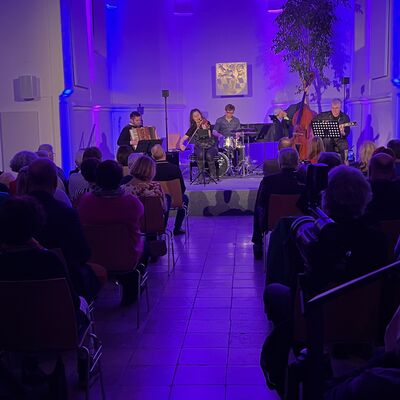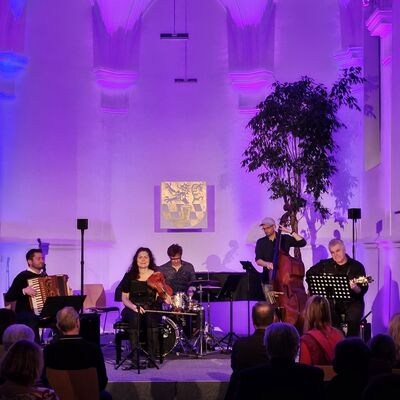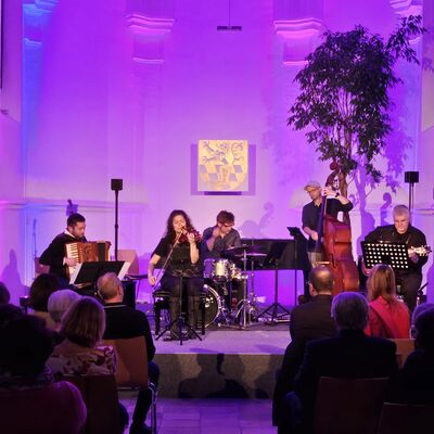 Balkon klingt nach lauen Sommerabenden, nach Tanzen unterm Sternenzelt. Gern zu Gypsy-Swing, dem europäischen Spross des Jazz, wo ansonsten viel improvisiert und auch mal avantgardistisch Neues hervorbracht wird. Und schon befinden wir uns mitten im musikalischen Masterprojekt von Stephan Ebn und Anna Katharina Kränzlein, beim brandneuen Quintett Balkon Jazz Ballett, deren Repertoire all das virtuos zusammenbringt: Wurzeln in der Klassik, mit dem Jazz vermählt und durch die Balkan-Rhythmusschraube gedreht! Wie das klingt? Nach einem zwiefachen „Rondo alla Turca“ mit rhythmischen Verschiebungen und einer Melodie, die zwar nach Mozart, aber irgendwie doch anders klingt. Oder nach einer Etüde von Chopin, die mit einem bombastischen Intro startet und dann in einen flotten Gypsy-Swing mündet. Oder nach einem irre schnellen Gankino, dieser mitreißende, bulgarische Volkstanz im 11/16 Takt. Virtuos gespielt, mit Charme und Esprit präsentiert. Im perfekten Zusammenspiel harmonieren die fünf wie ein homogener, pulsierender Organismus.