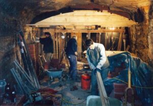 So bedeutend und lebensrettend die Rolle der Felsenkeller als Luftschutzbunker für viele tausend Menschen gegen Ende des 2. Weltkriegs auch war, hinterließen diese Ereignisse doch bei den Betroffenen traumatische Erinnerungen und viele wagten erst wieder in heutiger Zeit einen Besuch in den unterirdischen Räumen. Desweiteren schränkte eine Verbruchsphase in hangnahen Bereichen in den Jahren 1950 – 1970 jede potentielle wirtschaftliche Nutzung ein oder verhinderte sie sogar. In der Regel wurden nur noch die unter dem jeweils eigenen Gebäude liegenden Felsenkeller für eine Lagerung jedweder Art verwendet. Die etwa 60 Räume im Bereich des sog. „Labyrinths“ aber blieben weitgehend sich selbst überlassen und wurden in der Nachkriegszeit in großem Ausmaß mit Bauschutt, Beton, Sand, Schrott und Müll verfüllt.