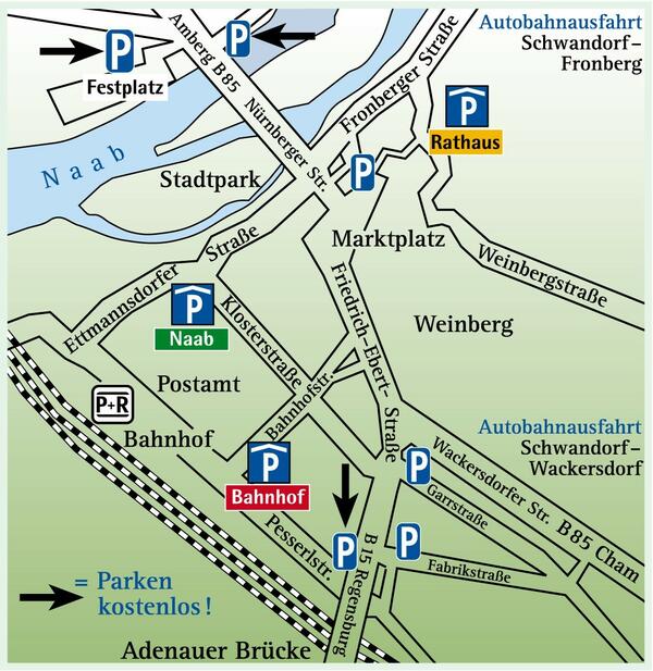 In den beiden städtischen Parkhäusern Naab und Rathaus parken Sie jeweils 1 Stunde lang kostenlos. Nach dieser Zeit gelten die günstigen Parkgebühren.
