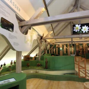 In diesen verschiedenen Naturräumen ist jeweils eine ganz besondere Flora und Fauna zu finden. Zahlreiche spannende Tierpräparate (darunter auch verschiedene Fischarten), sorgfältig gepresste Pflanzen in Herbarien oder eine vielseitige Baumbibliothek zum Anfassen machen dies im NaturInfoZentrum anschaulich – ergänzt durch interessante Informationen in den einzelnen Medienstationen. Ob Wissensquiz oder Wissensbuch, an den Touchscreens kann jeder gerne mehr über naturkundliche Themen erfahren und sich dann in die schöne Umgebung Schwandorfs aufmachen…